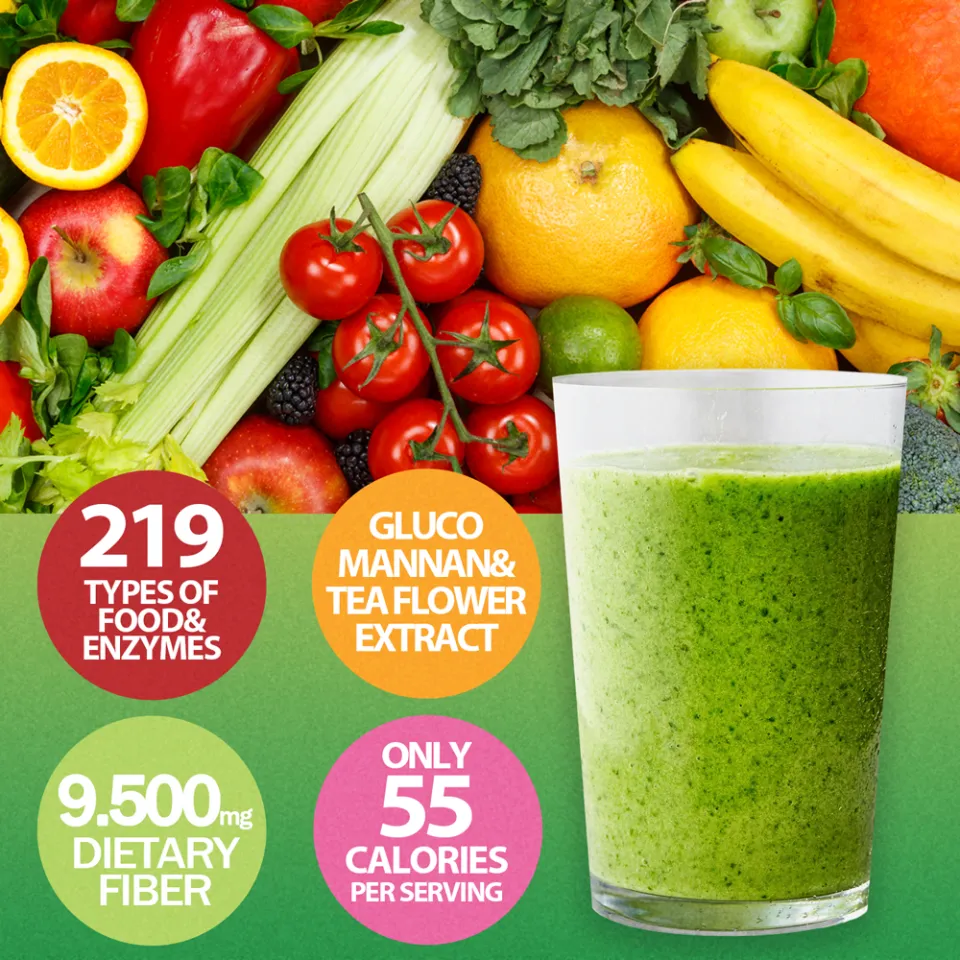 | Sastojci | Water-soluble dietary fiber, dextrin, barley grass powder, soy protein, Plant fermented extract ( rice koji, pearl coix, apple, pineapple, grape skin・seed, banana, onion, kiwi, cabbage, pumpkin, tomato, carrot, green pepper, broccoli, orange, white radish, pomegranate juice, brown rice, maitake mush-room, dried shiitake mushroom, rose hip, turmeric, barley, cinnamon, citron, ginger, pseudoginseng, jujube, Jew’s mallow, angelica keiskei, sweet potato, yam, soybean, glutinous millet, glutinous husked foxtail millet, barnyard millet, pearl barley, sorghum, red rice, red glutinous rice, black glutinous rice, green rice, curcuma aromatica, curcuma zedoaria, black-eyed pea, black bean), psyllium husk, camellia extract powder, juice powder(dextrin, concentrated orange juice, concentrated grape juice, concentrated apple juice, sugar, concentrated satsuma orange juice, concentrated blueberry juice, concentrated peach juice, branching oligosaccharide), glucomannan, dry powder of plant fermentation(dextrin, brown sugar, fruits・vegetable(orange, pineapple, banana, apple, papaya, guava, carrot, kiwi,others), wild grass extract(Pfaffia, rosemary, catuaba, murasakiipe, cat's claw, others), grains(brown rice, long bean, corn, oats, barley, pea, cashew nuts, black sesame, millet, soybean, rye, others), seaweed(Undaria pinnatifida, kelp, laver), honey, plant fermented food(dextrin, beet sugar, brown sugar, maltose, artemisia princeps, turmeric, houttuynia cordata, aloe arborescens, ginseng, soybean, banana, yam, apple,others ), plant fermented extraxct(saccharide, fruits, vegetables, wild grasses, beans, mushrooms, seaweeds, cereals), banana puree, wild grass fermented extract(oligosaccharide, sugar, beet sugar, artemisia princeps, others), polysaccharide thickener, acidulant, shellfish Calcium, flavor, magnesium oxide, sweeteners(aspartame・L-phenylalanine compound, acesulfame K), VitaminC, iron pyrophosphate, extracted VitaminE, niacin, calcium pantothenate, VitaminB1, VitaminB6, VitaminB2, VitaminA, folic acid, VitaminD, VitaminB12 |